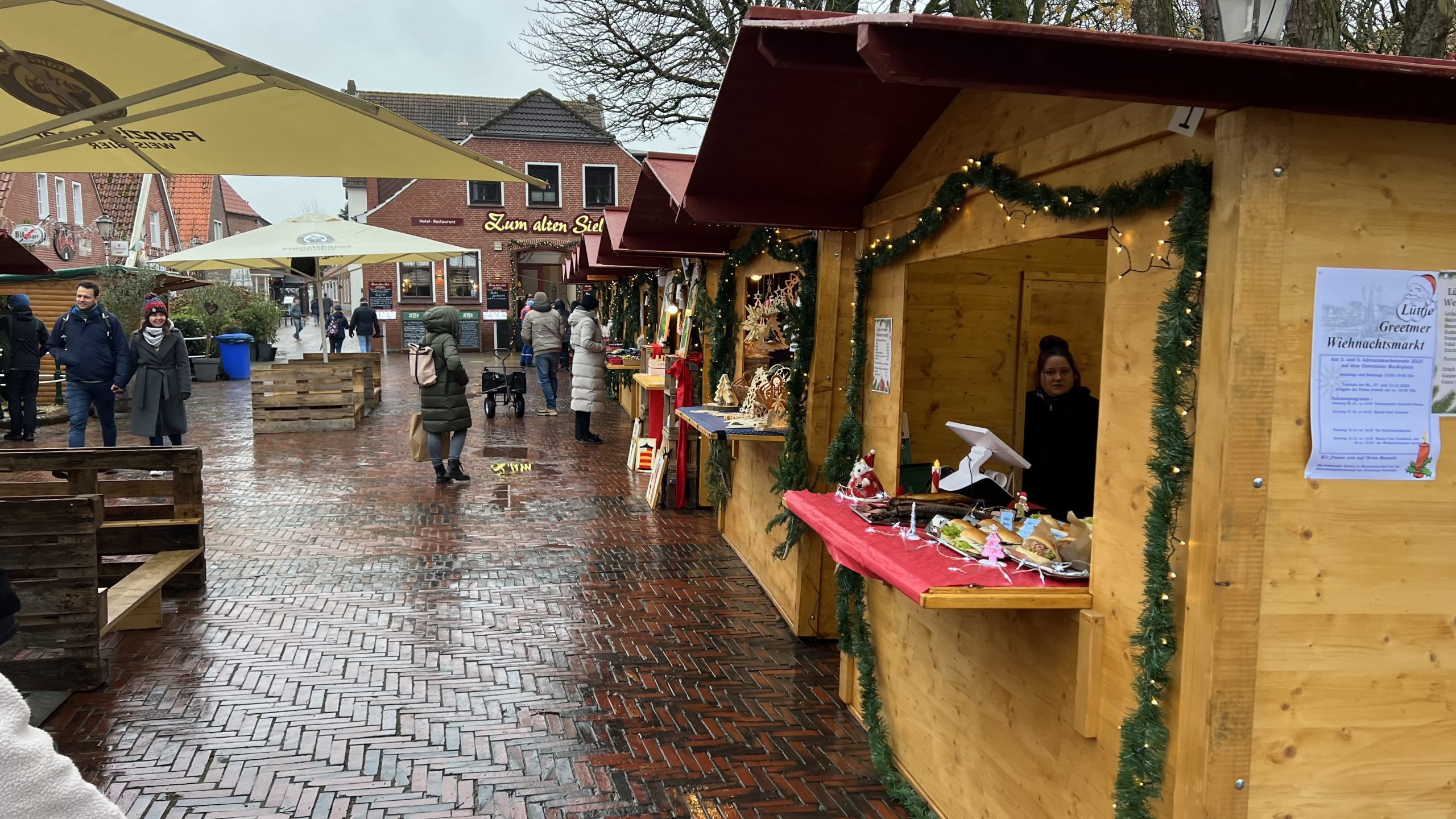 Was ist denn das? Liebe Greetsieler – ist das euer Ausdruck für ein gemütliches, besinnliches Weihnachtsfest? Wollt ihr hier euren Gästen gern diese Holzbuden zeigen, steht ihr hier mit Freunden gern zusammen und gebt gern Geld aus, um einen Glühwein zu trinken oder einen kandierten Apfel zu essen?