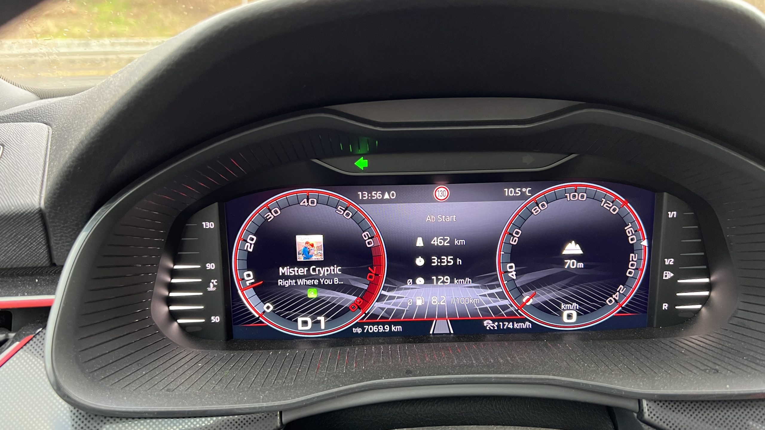 (mittleres Bild) 20 Km Landstraße mit einem Tankstopp auf 460 Km bei einer Durchschnittsgeschwindigkeit von 128 Km/h mit 8,2 ltr. Verbrauch …