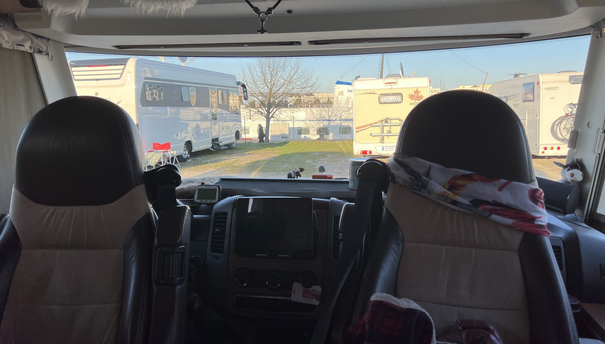 Jetzt frühstücken wir gerade im Mobil, denn zum draußen sitzen ist es einfach zu frisch. Außerdem ist hier auch nicht der richtige Ort, denn auf diesem Stellplatz ist es recht eng zwischen den Fahrzeugen. Während unserem Frühstück verlässt das Mobil direkt vor uns die erste Reihe und wir können unseren Standort wechseln.