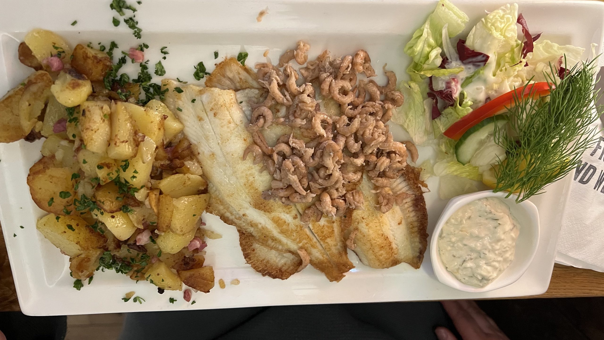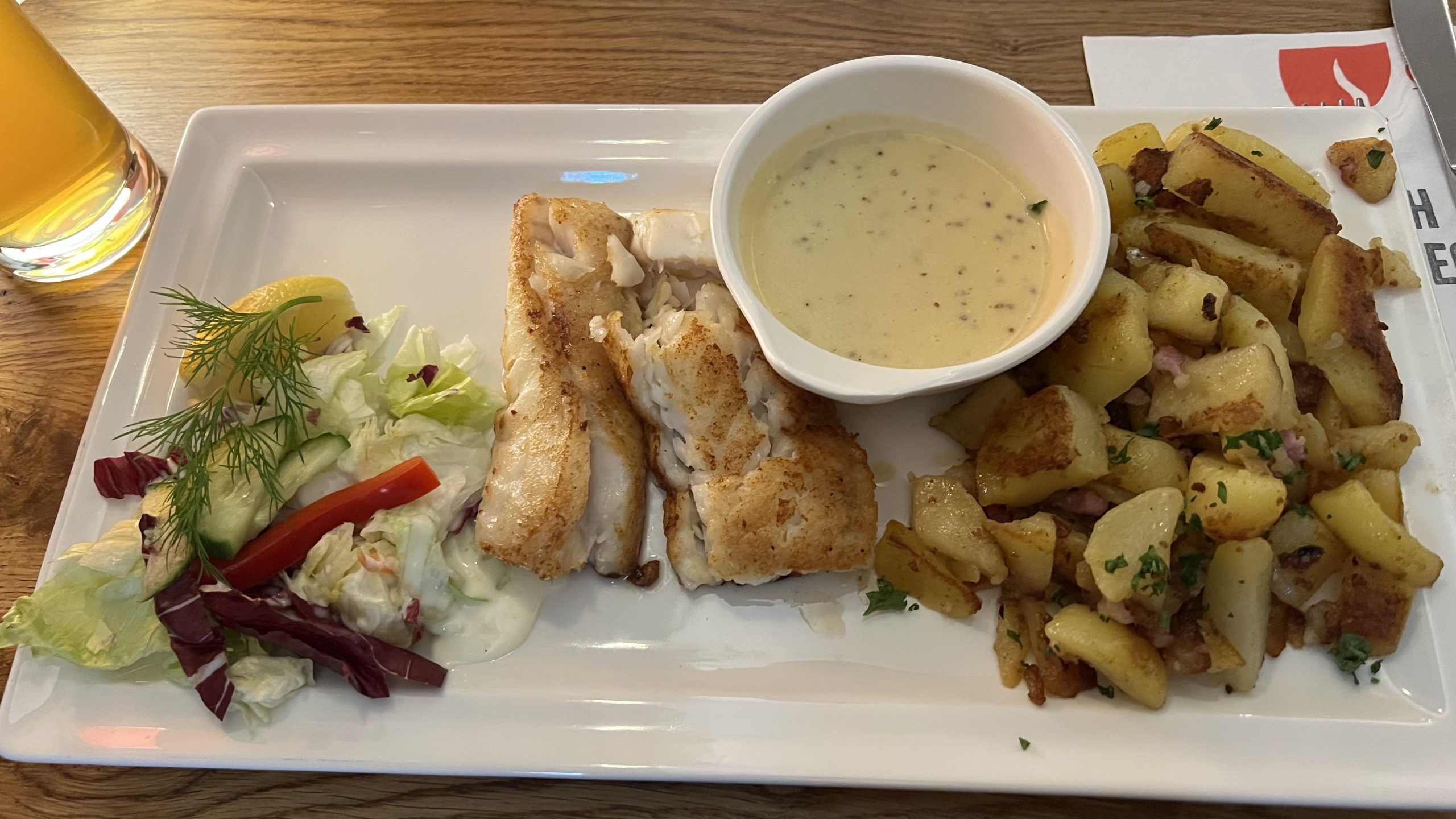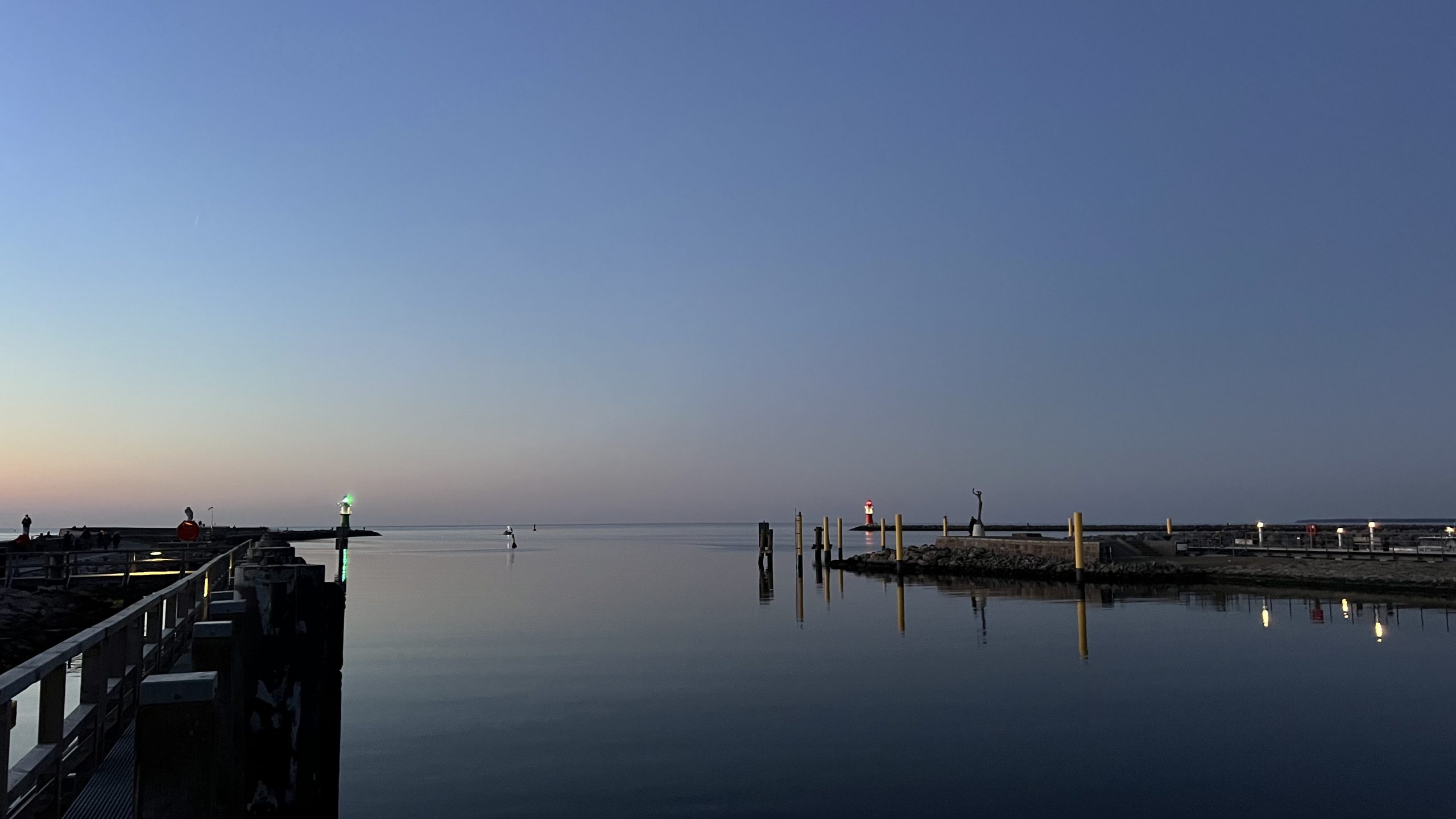 Ja, was ist es wieder lecker hier! Neidlos muss man gestehen: Sie können nicht nur Fisch lecker zubereiten – sie schaffen das auch mit Bratkartoffeln! Wir sind nicht nur satt, sondern auch zufrieden und gehen nach dem Essen noch bis zum Molenfeuer Westmole – zur Hafeneinfahrt.