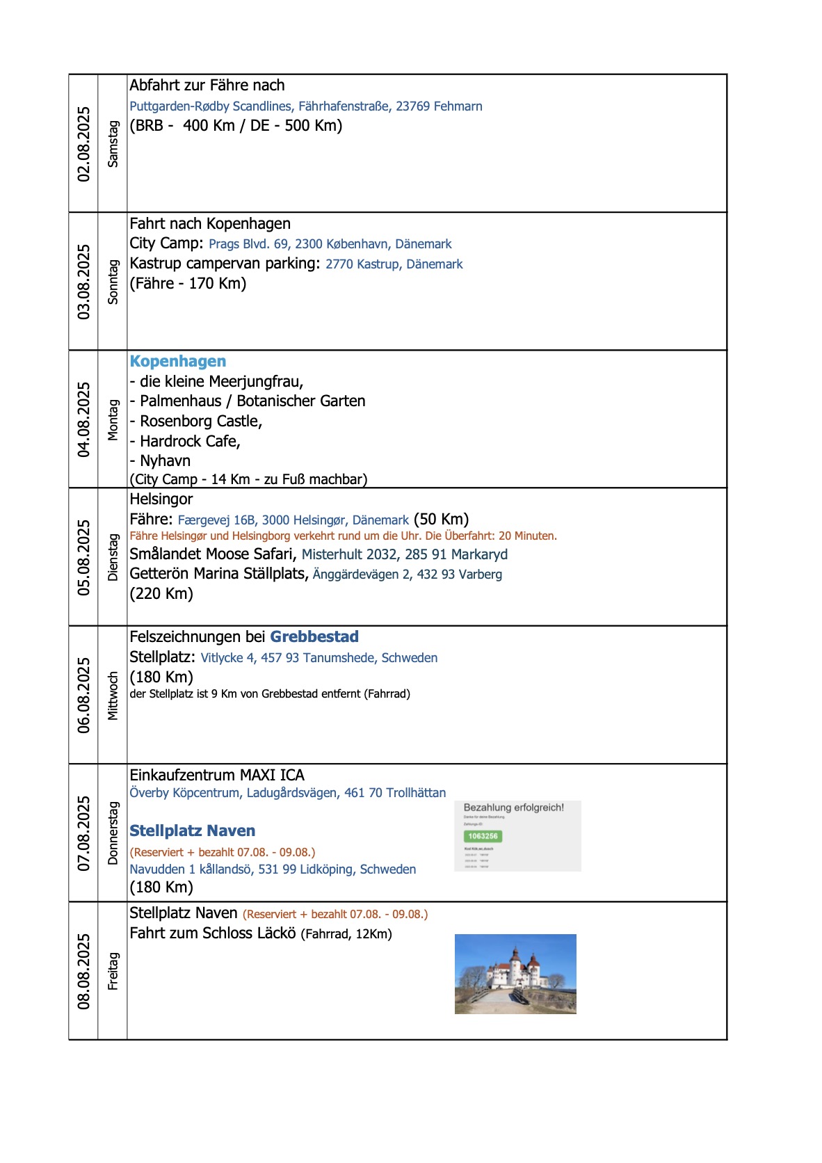 eine Reise über Kopenhagen, Naven, Grebbestad, Arvig, Falun, Ängsskär, Götakanal, Öland, und Tjurkö in Südschweden mit dem Wohnmobil