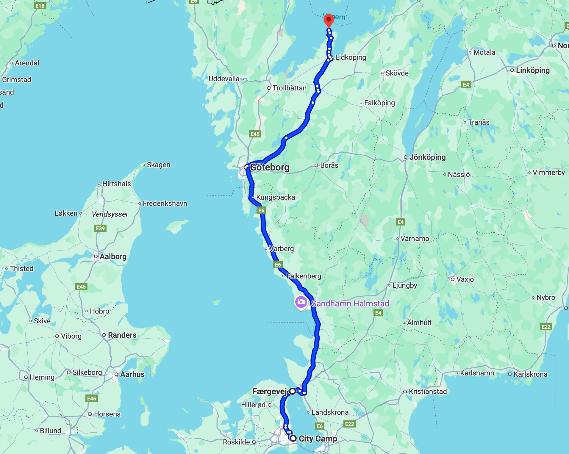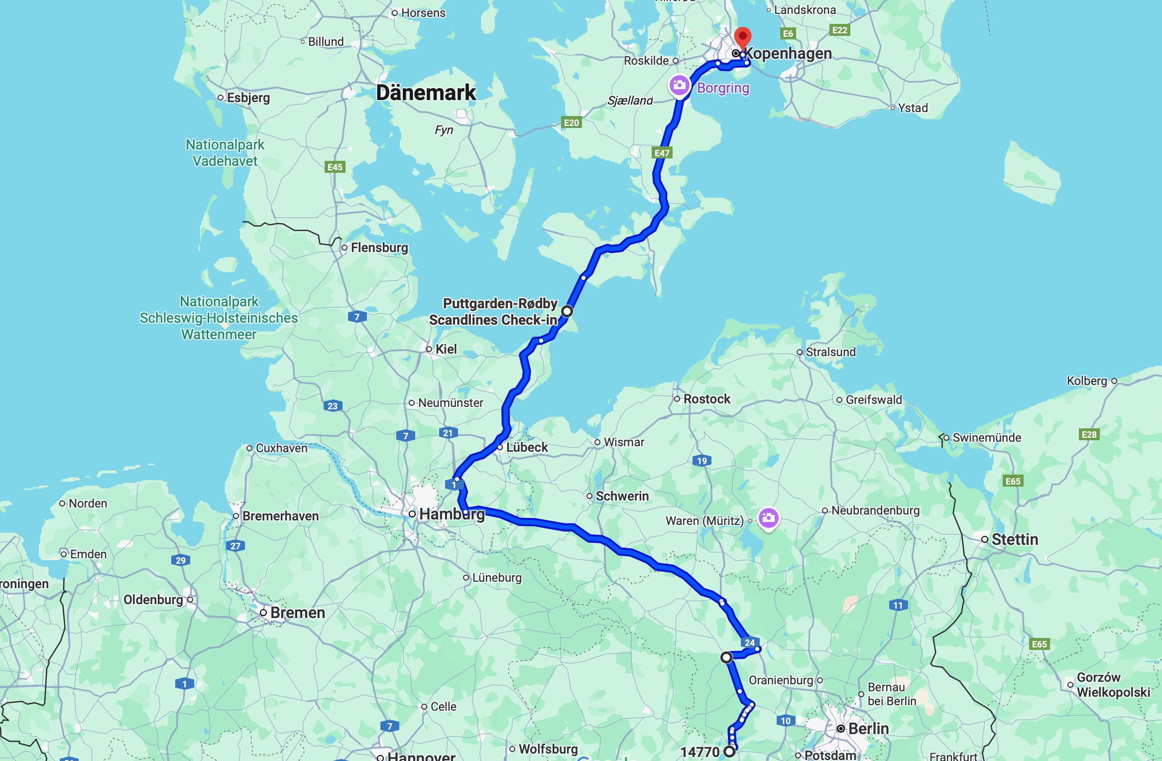 Von Kopenhagen zur Fähre, die uns nach Schweden bringen wird, ist die E47 gut ausgebaut und dadurch kommen wir gut voran und erreichen ohne Zeitdruck den Hafen