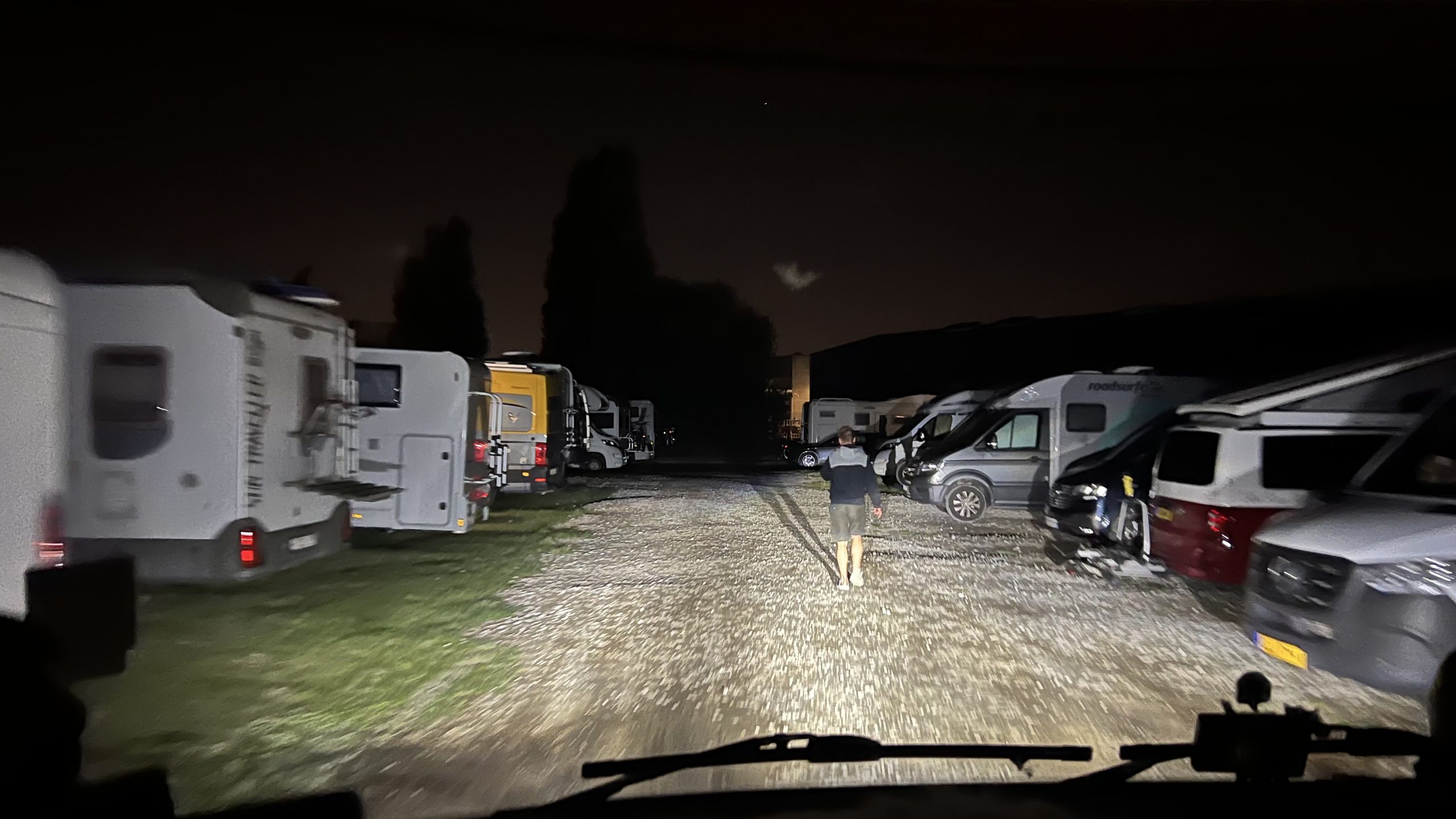 Zufällig kommen gerade zwei Camper zurück und öffnen das Tor. Ich steige aus und möchte mal fragen, wie es hier so läuft, als ich merke das die beiden deutsch sprechen. Die Begrüßung „Moin Stefan“ ist schon gut 😉, dann sagen sie mir, das sie das Tor offen lassen – ich kann mir ja einen freien Platz suchen. Klasse, die beiden sind weg und ich öffne das Tor, fahre hinein und gerade als ich das Tor schließen will, kommt die Platzaufsicht und wir können uns mitten in der Nacht anmelden! Dann wird uns auch noch ein freier Platz gezeigt 👍🏻