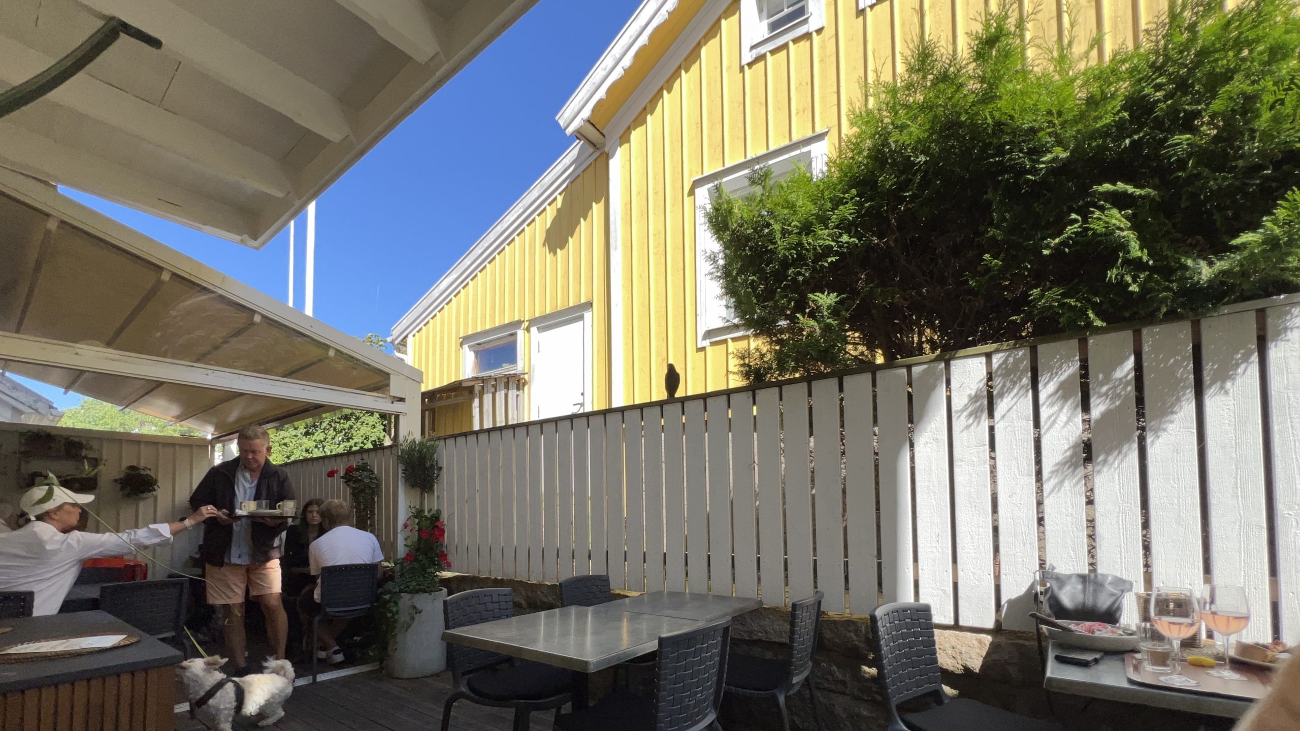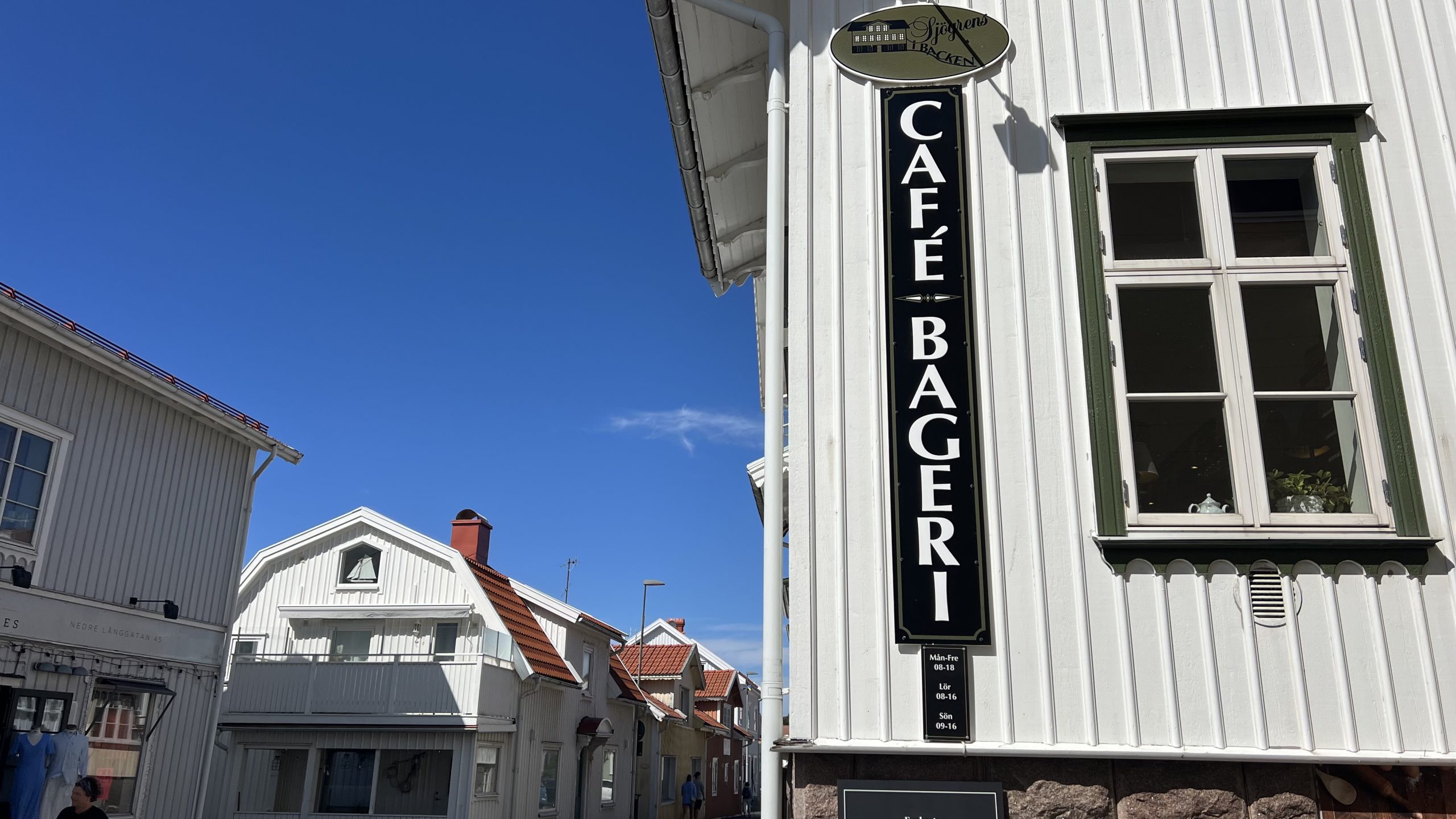 Danach gehen wir zu den Rädern und als wir gerade Grebbestad verlassen wollen, finden wir dieses schwedische Café. Na, genau so etwas haben wir doch schon gesucht!