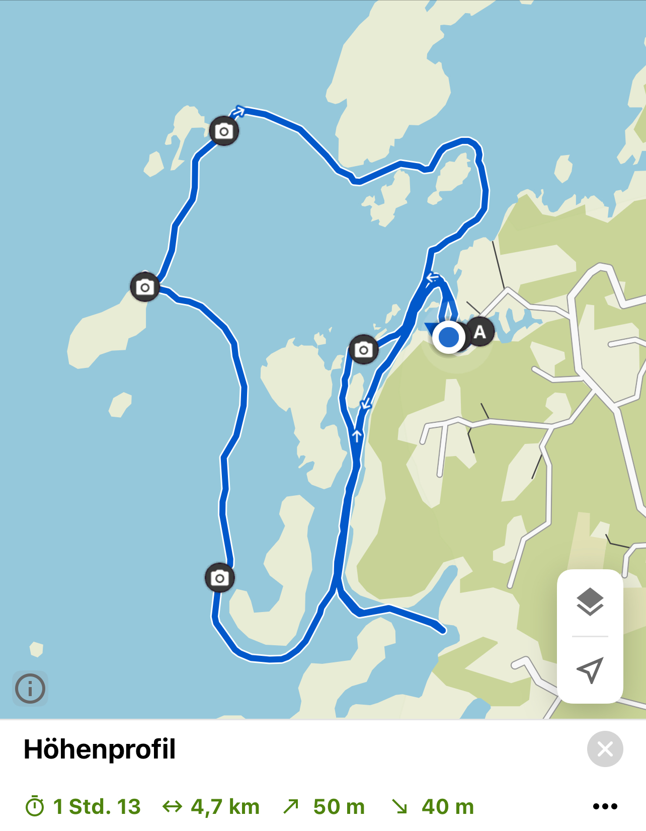 Heute werden wir etwa 10 km mit dem Fahrrad fahren und dank der Komoot-App