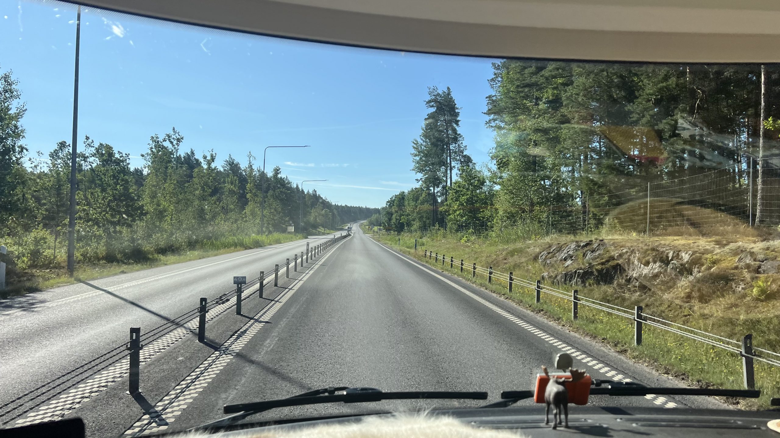 Als wir dann aufbrechen, geht es heute weiter in den Süden. Heut fahren wir auf den typischen schwedischen dreispurigen Landstraßen. Immer wieder wechseln die Spuren und immer wieder wechseln die Doppelspuren. So kann man in bestimmten Abständen immer wieder rüberholen, wenn es nötig ist.