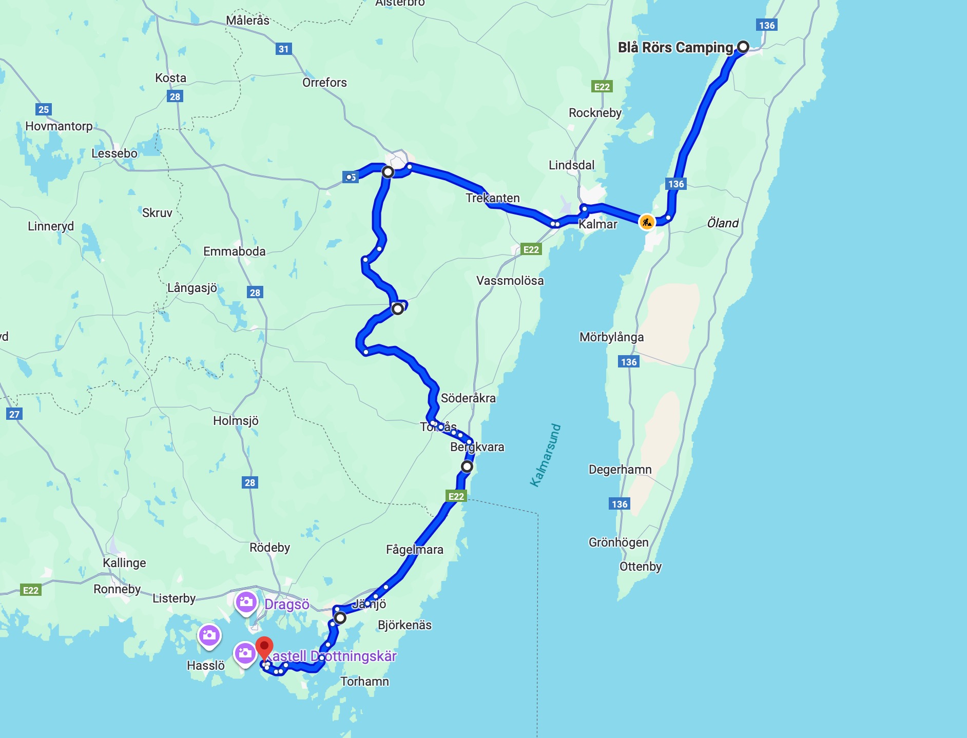 Die Anreise nach Tjurkö, dieser südlichen Insel haben wir ganz bewusst auf Nebenstraßen gelegt. Ganz entspannt geht es mit 70 oder 80 Km/h durch den Süden Schwedens.