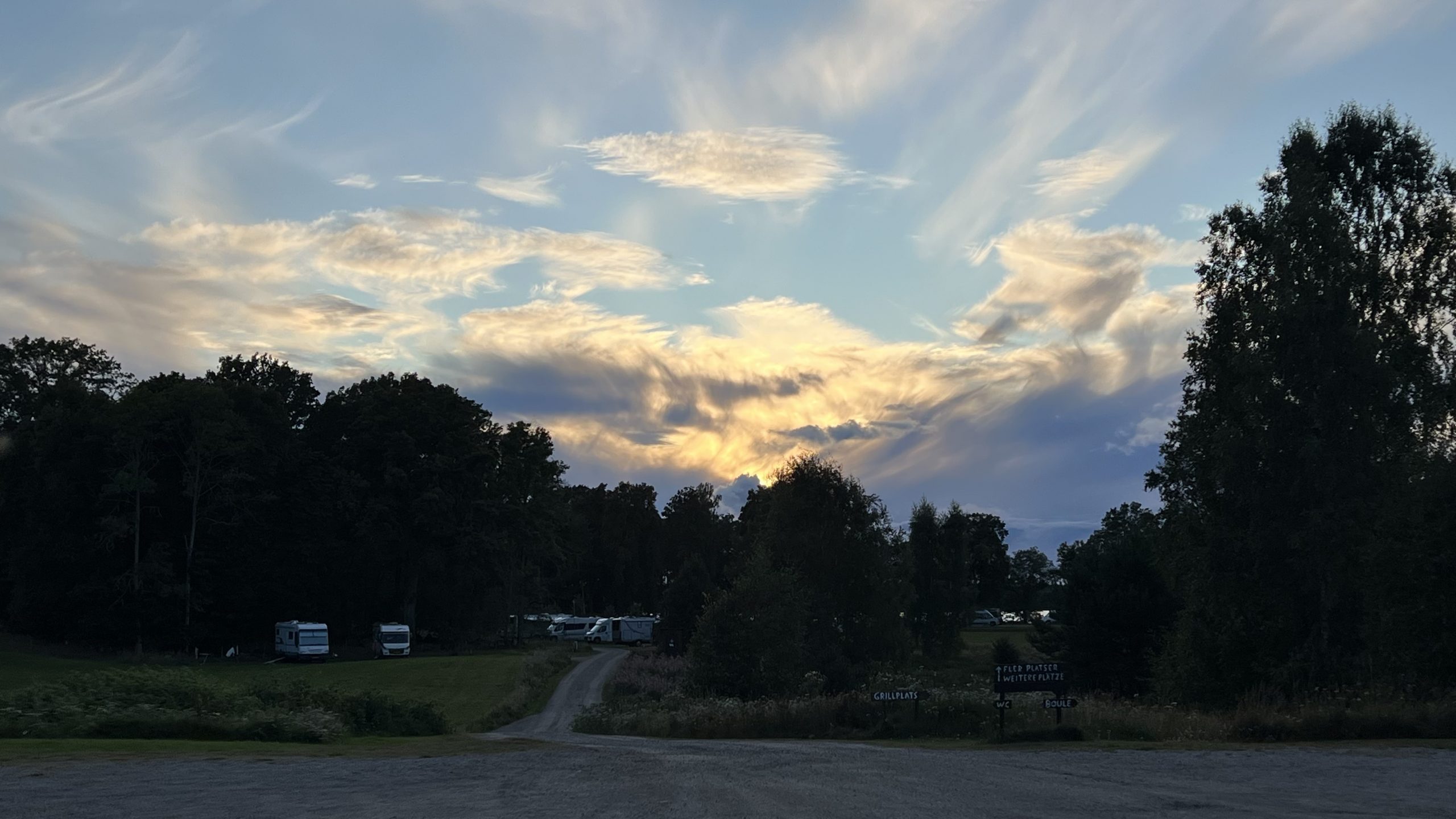 Am Platz angekommen lernen wir unsere schwedischen Dauercamper-Nachbarn kennen. Sie sind sehr nett und essen schon – wir bereiten unser Abendbrot vor.