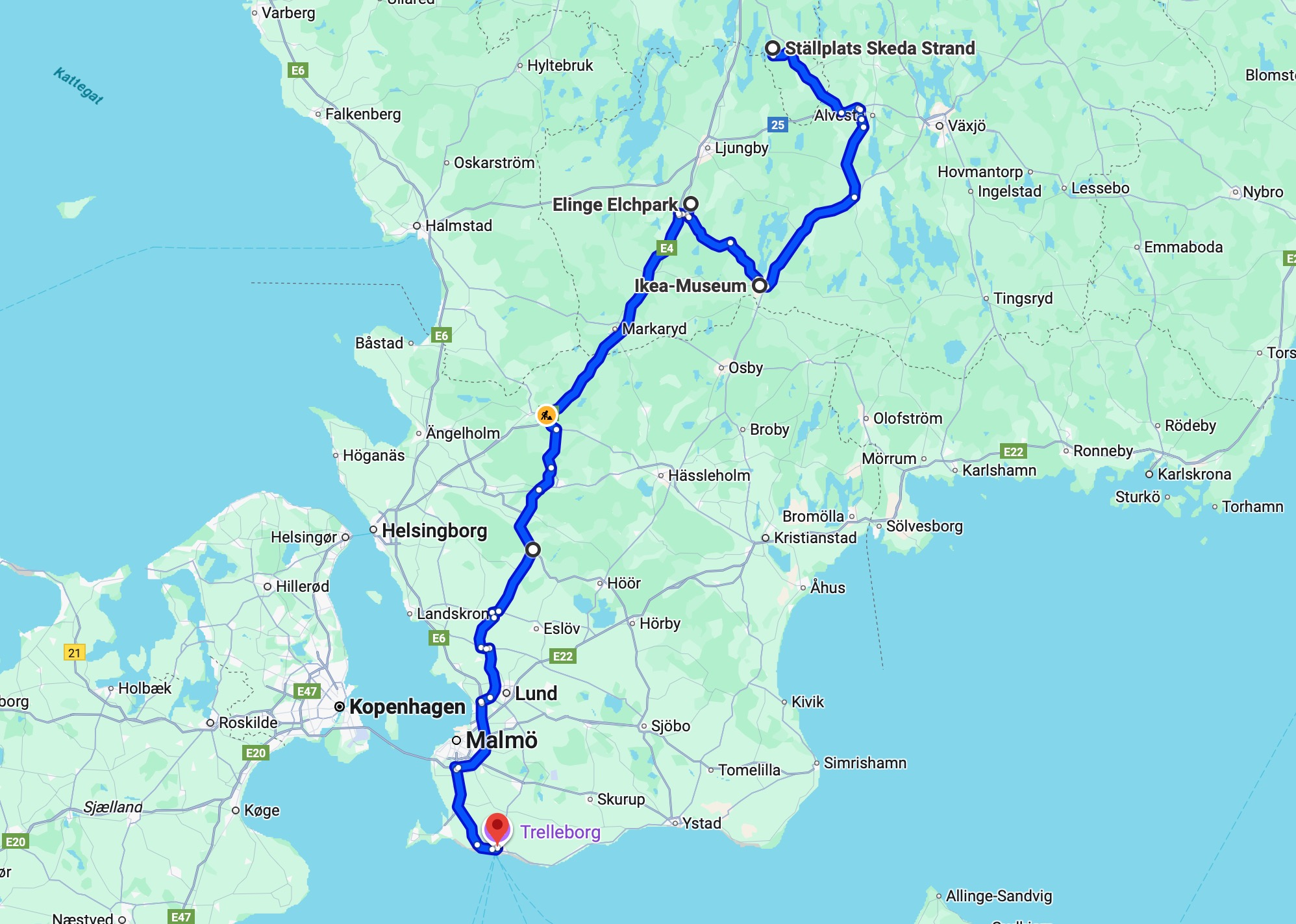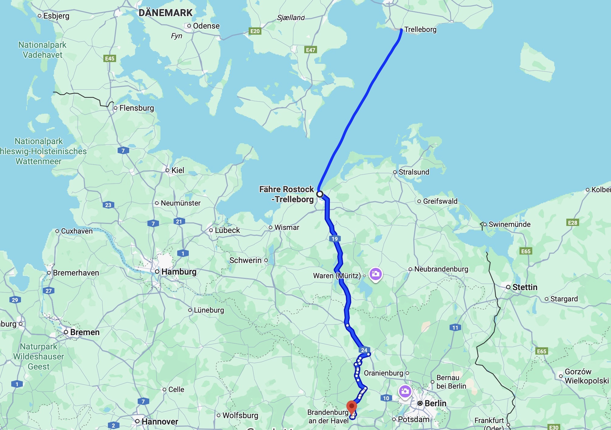 Es ist nicht mehr weit zu unserem letzten Übernachtungspunkt in Schweden. Die Fähre legt morgen früh um 7:30 Uhr in Trelleborg ab, etwa 1,5 – 2 Stunden vor der Abfahrt wollen wir einchecken.