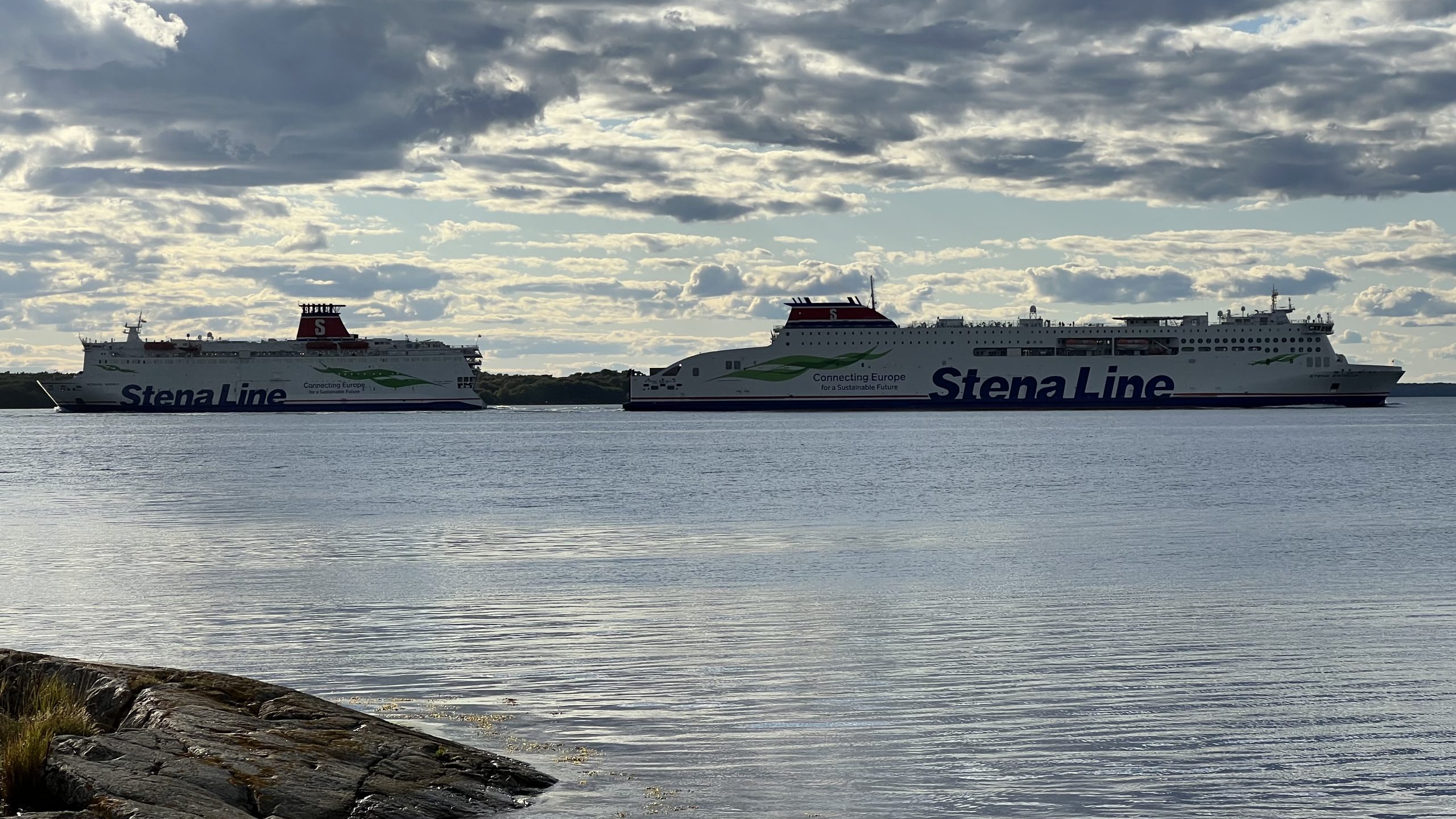 Zurück am Platz machen wir einfach Urlaub und spazieren später auf den für Schweden typischen flachen Felsen am Wasser entlang. Ausgerechnet jetzt begegnen sich zwei Fähren der Stena Line 👍🏻