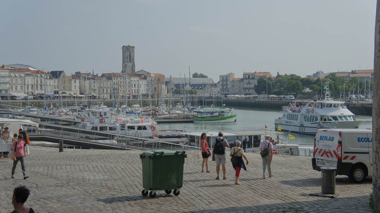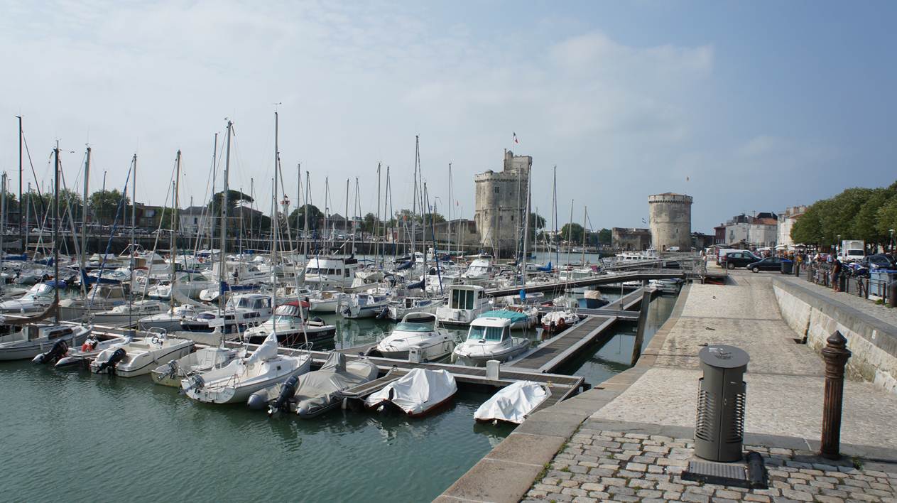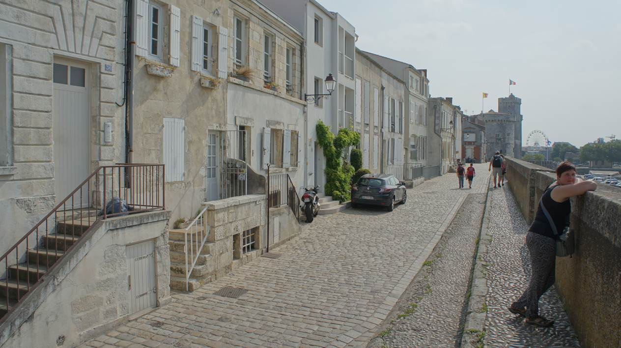 Nach dem Frühstück wollen wir heute nach La Rochelle. Das Moped steht bereit und die Fahrt kann beginnen. Nach Navi sind es 18 Kilometer bis zum Hafen. Die Stimme des Navi kommt über Kopfhörer in mein Ohr unter den Helm, das Handy ist in der Tasche und navigiert. Das funktioniert gut und wir kommen, nachdem wir die Brücke nach La Rochelle ohne Maut überquert haben, gut im Hafen an. Ein Parkplatz ist mit dem Moped natürlich kein Problem und so können wir uns auf den Fußweg durch die herrliche Altstadt machen.