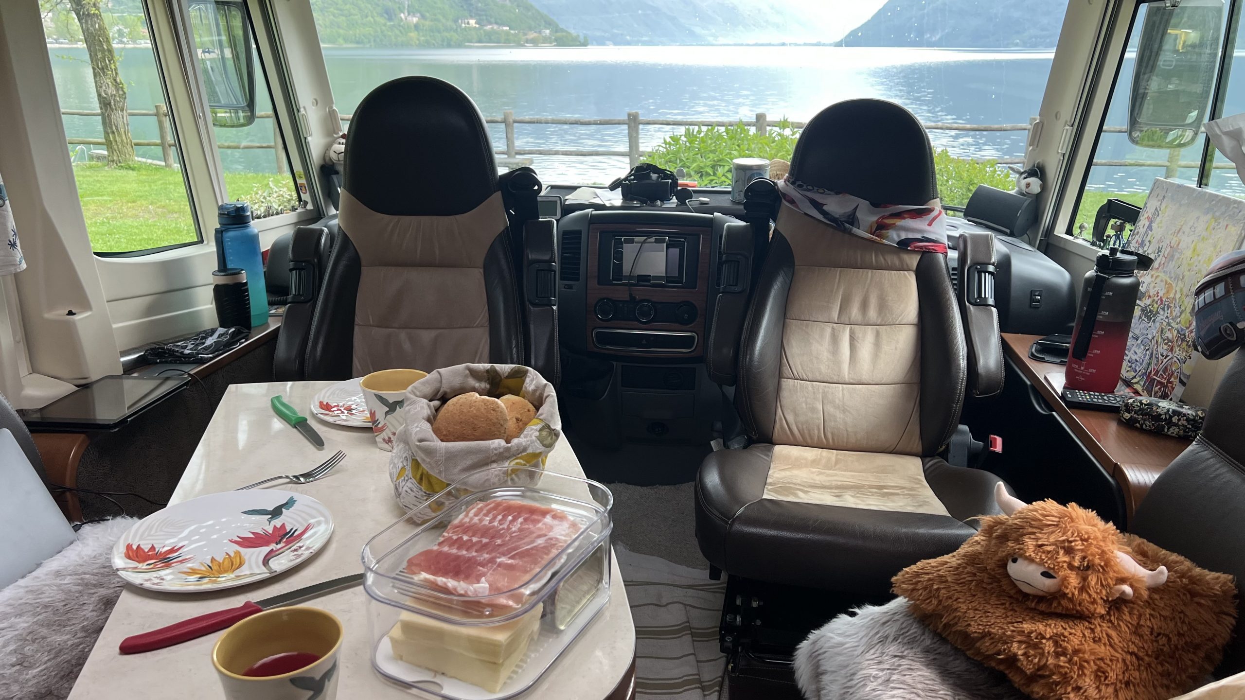Später dann, als wir aufstehen ist es schon besser. Es hat tatsächlich geklappt – ich konnte noch einmal einschlafen 👍🏻. Jetzt gibt es Frühstück und das gibt es noch im Mobil, denn draußen ist es einfach zu frisch..