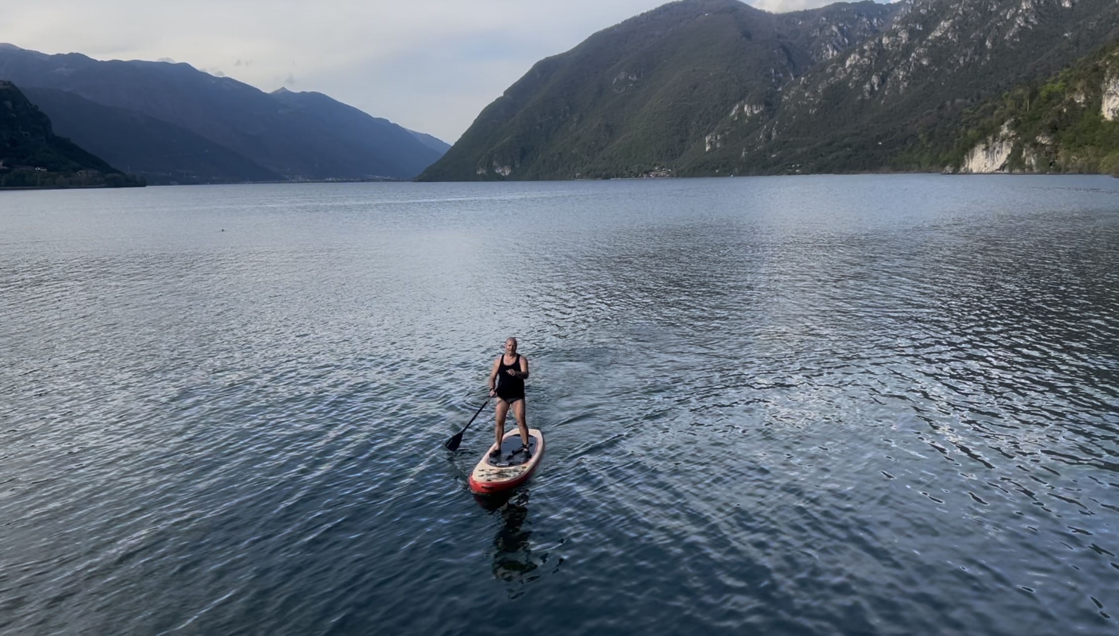 Ich sehe heute gar keine Wellen auf dem Idrosee – was liegt näher, als jetzt mit dem Stand Up Paddel in See zu stechen?