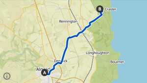 Stattdessen gehen wir an der Nordseeküste entlang – hier gibt es keinen Strand, es ist alles voller Steine – und kommen nach Craster.